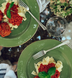 MEATBALLS IN TOMATO SAUCE WITH FRESH LINGUINI